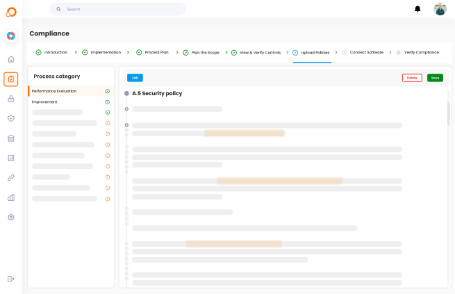 Check real-time status of your current compliance posture to monitor controls, policy documents and prepare for compliance audits.